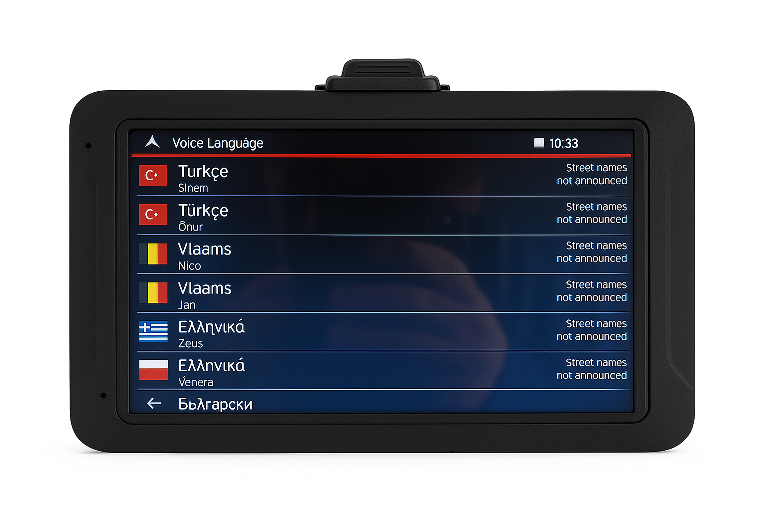 Multilingual Voice Guidance – English, Dutch, Flemish, German, French, Italian, Polish, Romanian, Turkish, Russian, Greek, and more.