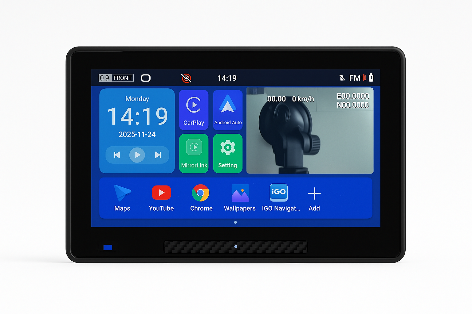 All-in-One Navigation & Dashcam Tablet – large 9" HD display (22.5 cm), perfect for motorhomes, caravans, and trucks.