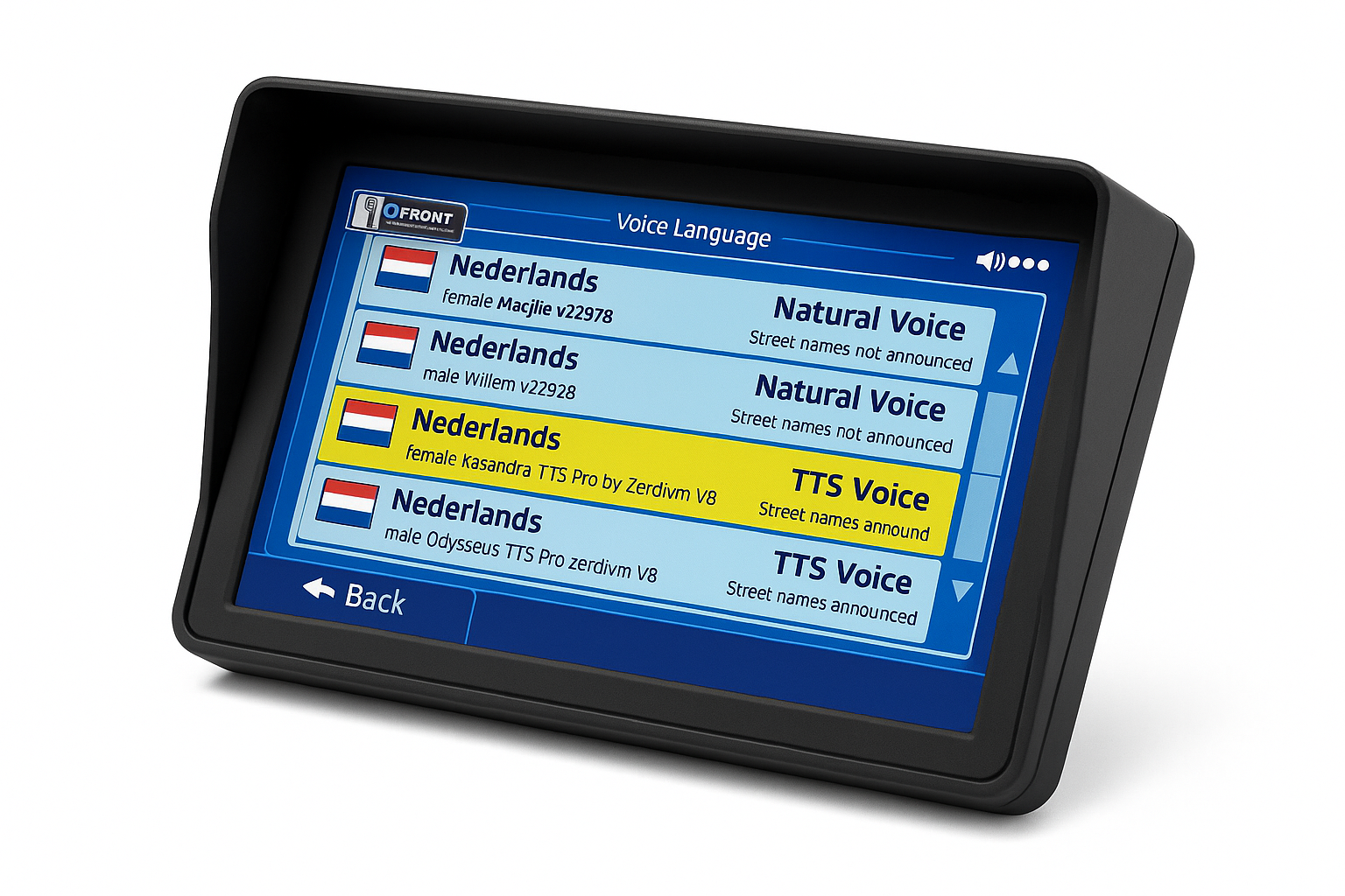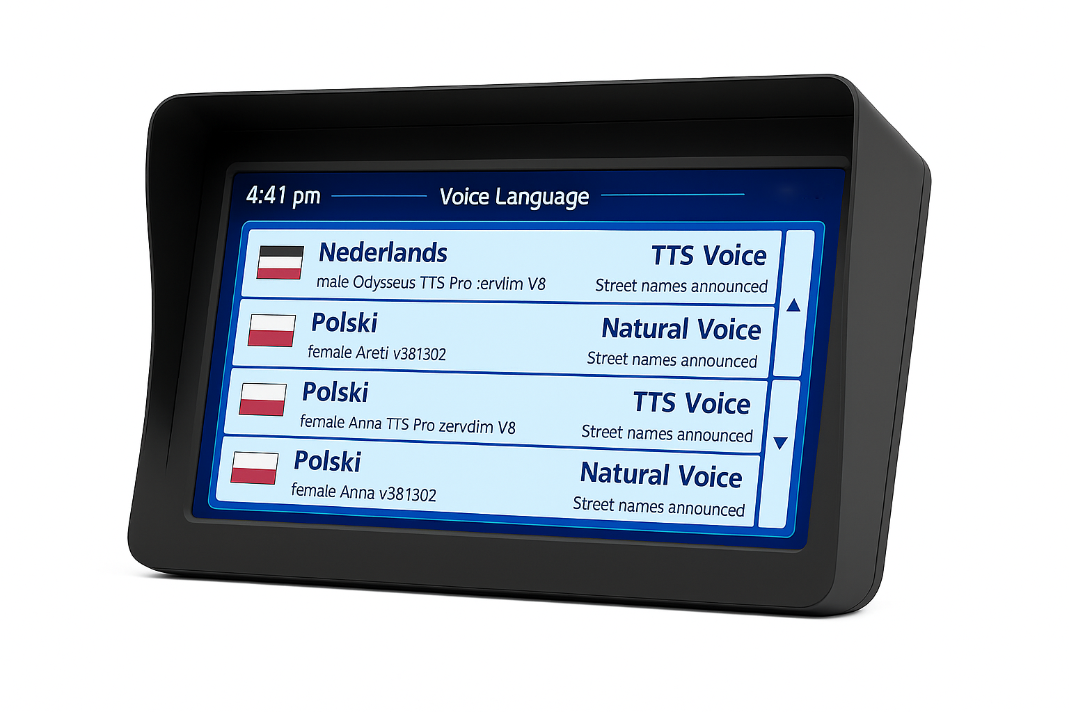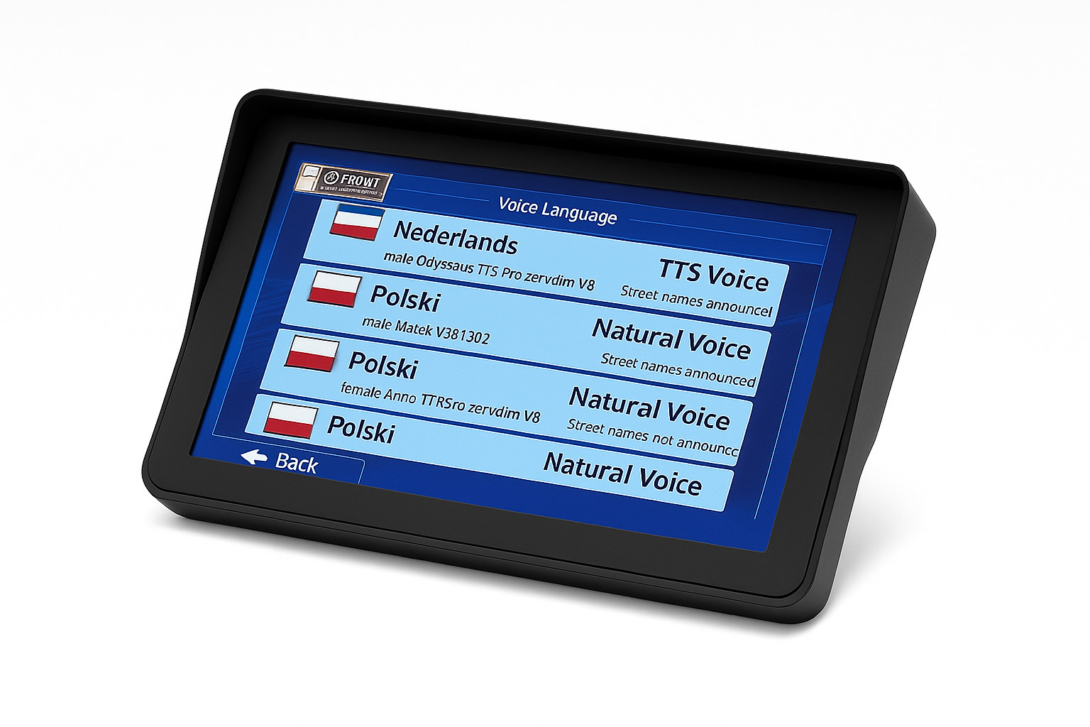 iGO Primo Navigation with TTS PRO – clear computer-generated voice guidance in multiple languages (incl. English, Dutch, French, German, Italian, Spanish, Polish, Romanian, Turkish & more)