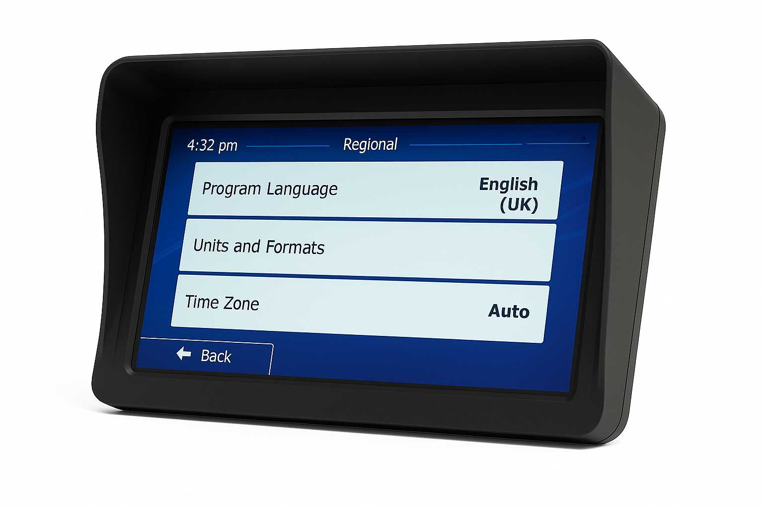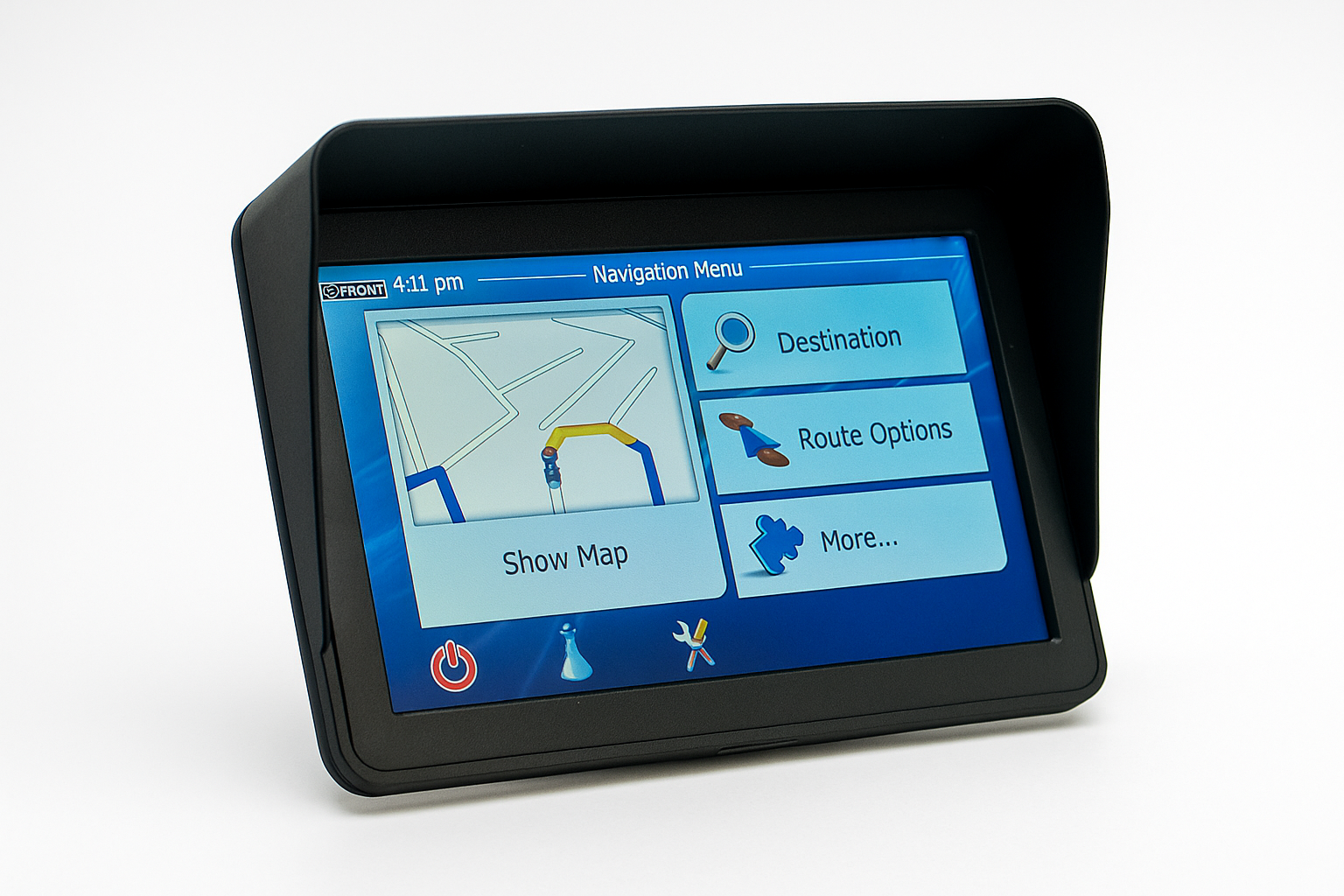9" HD Touchscreen with fixed sunshade – better visibility, reduced glare