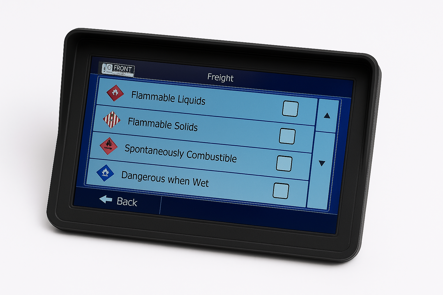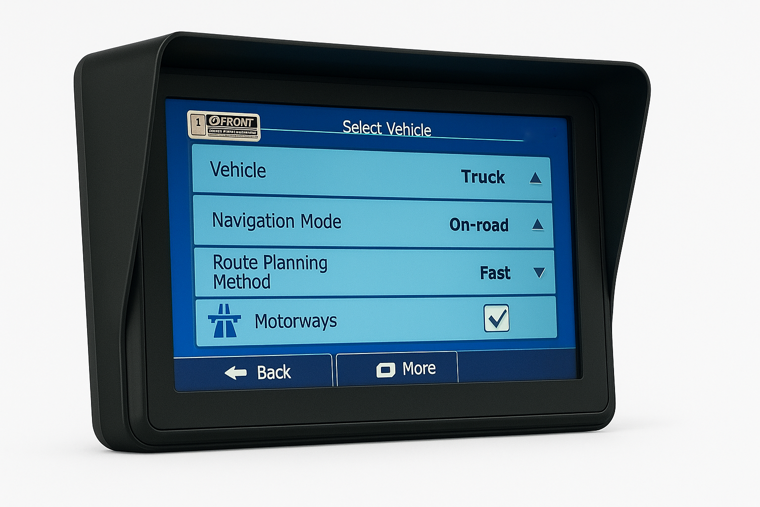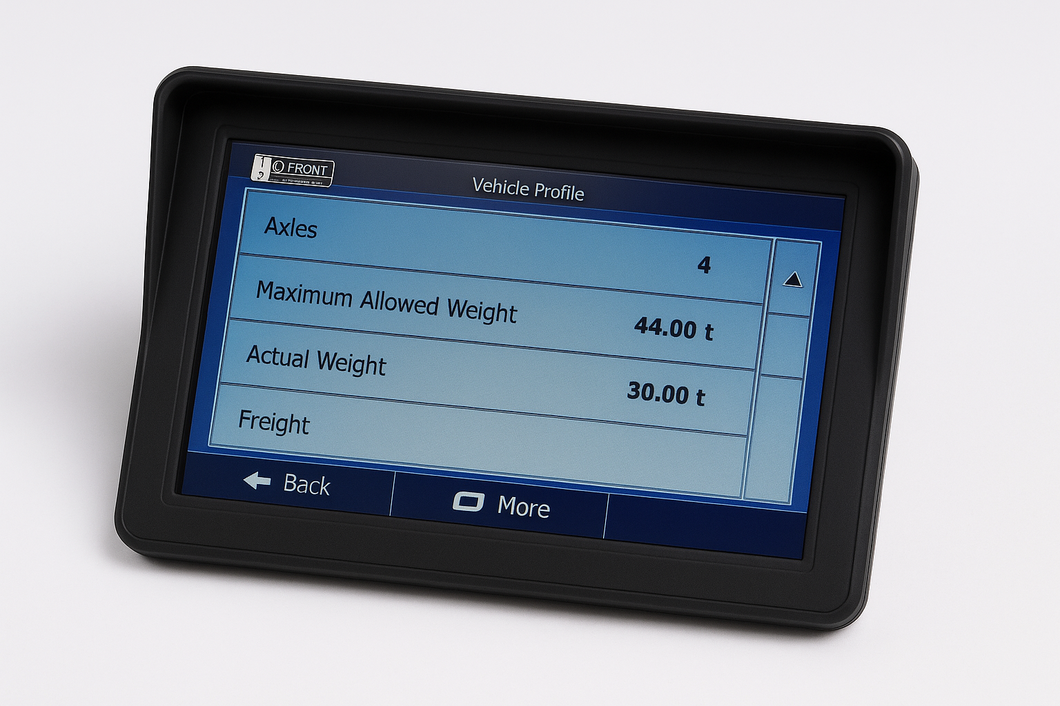 Advanced vehicle settings for trucks, buses & campers: length, width, height, weight, axles, with/without trailer, cargo type (gas, explosives, hazardous goods, etc.)